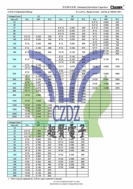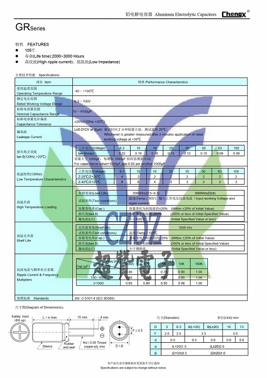 高頻低阻GR系列ChengX承興鋁電解電容