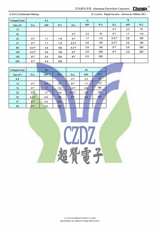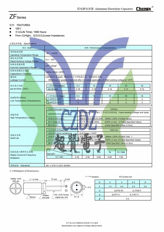 高頻低阻ZF系列ChengX承興鋁電解電容