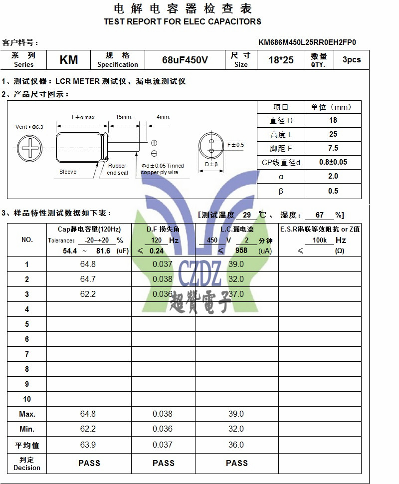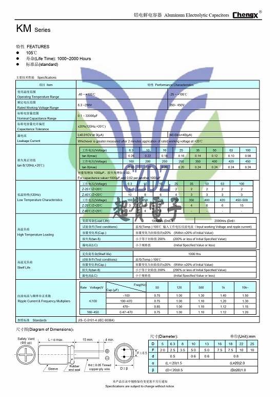 KM 68UF450V 18*25ChengX承興品牌全系列鋁電解電容
