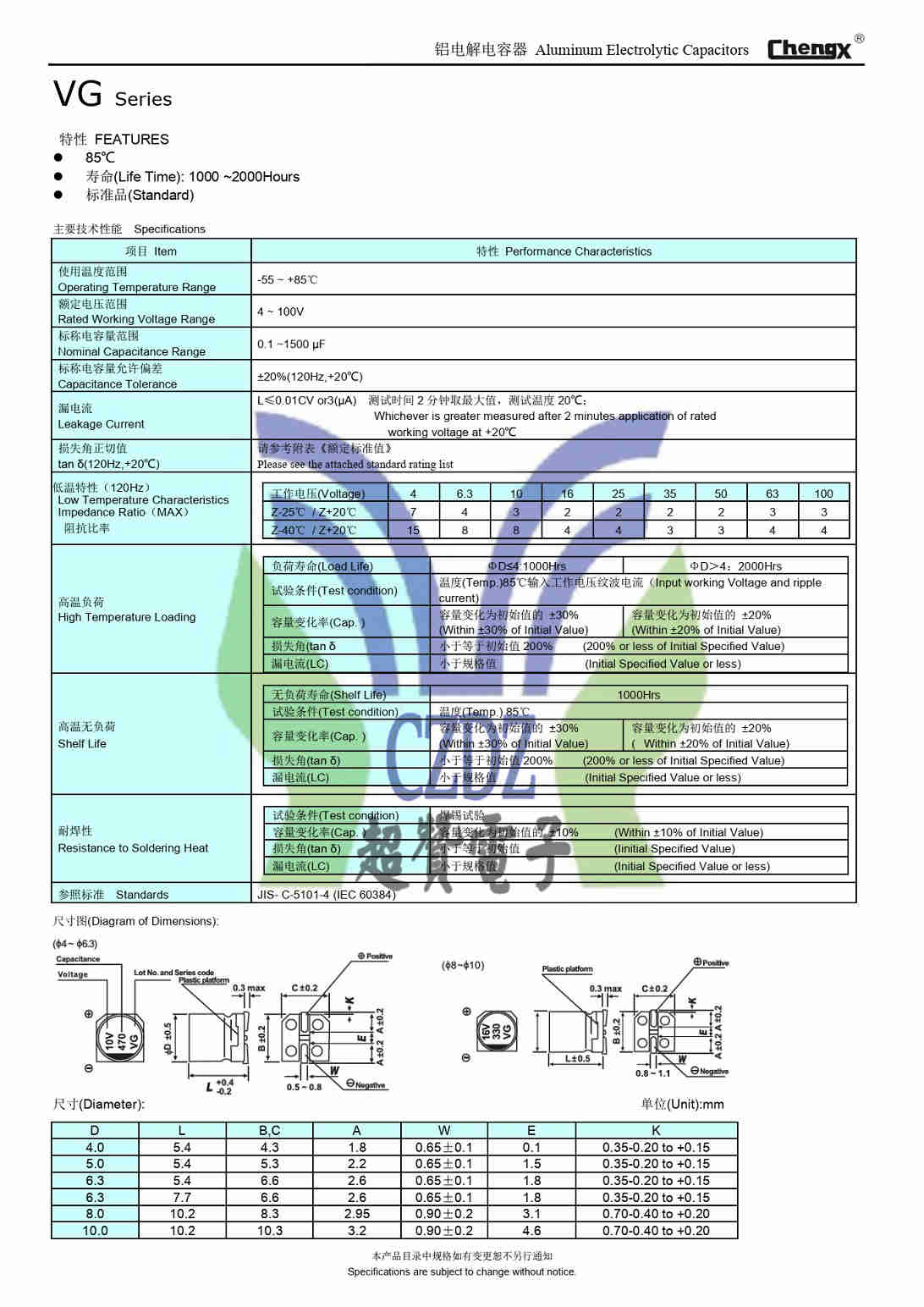 SMD VG full range of aluminum electrolytic capacitors